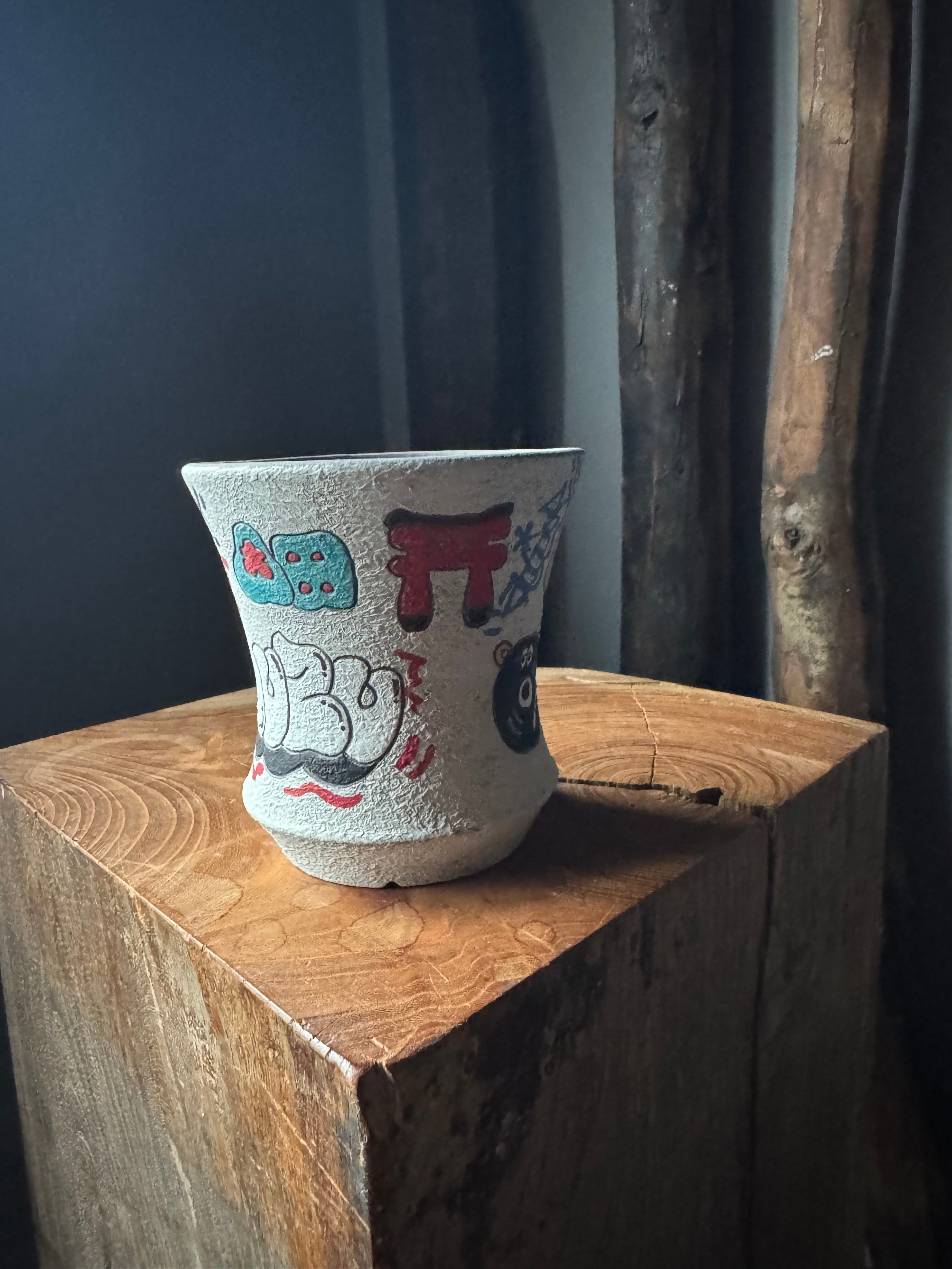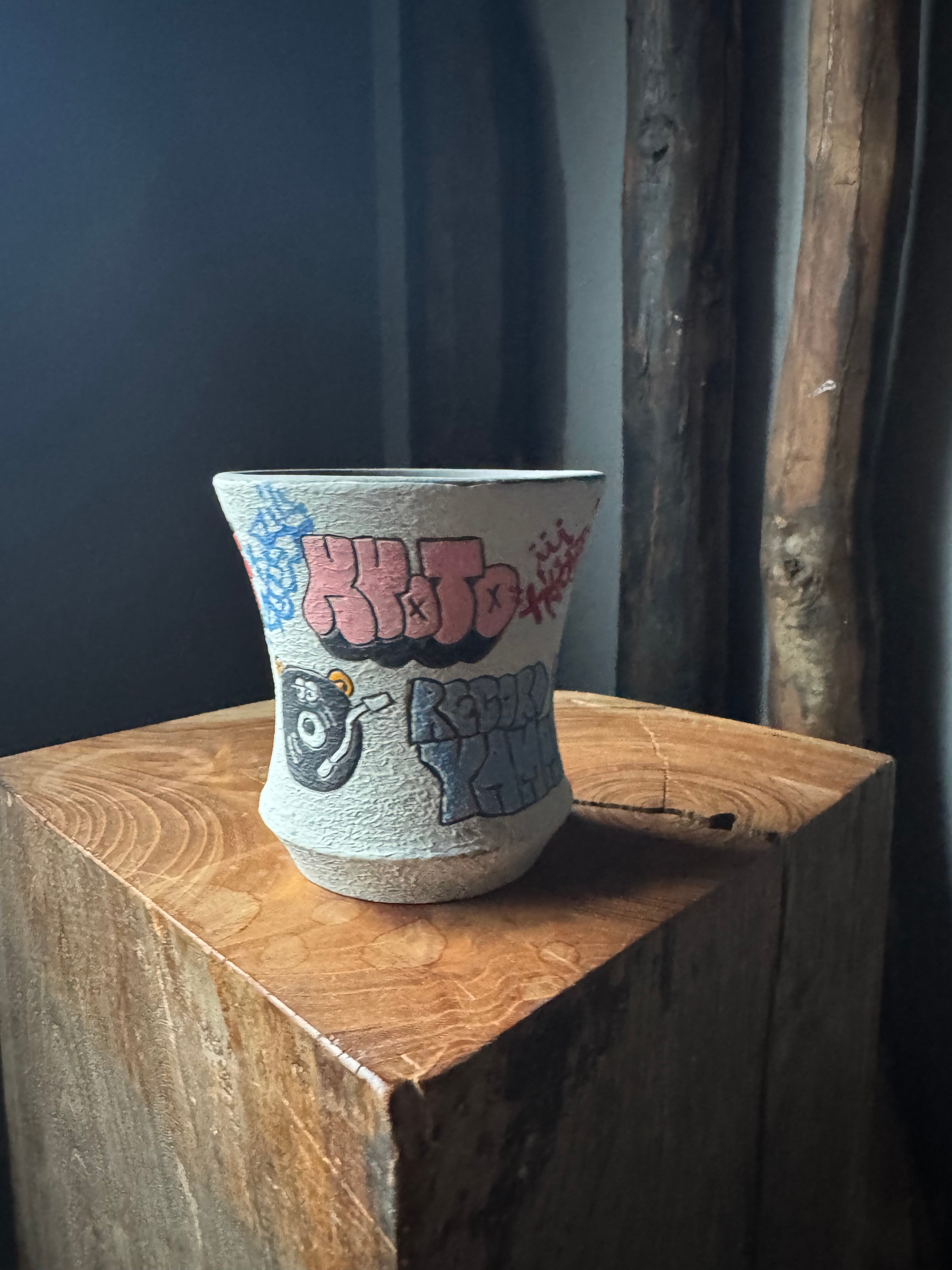 釉薬は一切使っておらず焼き締めでつくることにより、より一層ストリートでのグラフィティアート色を強めています。