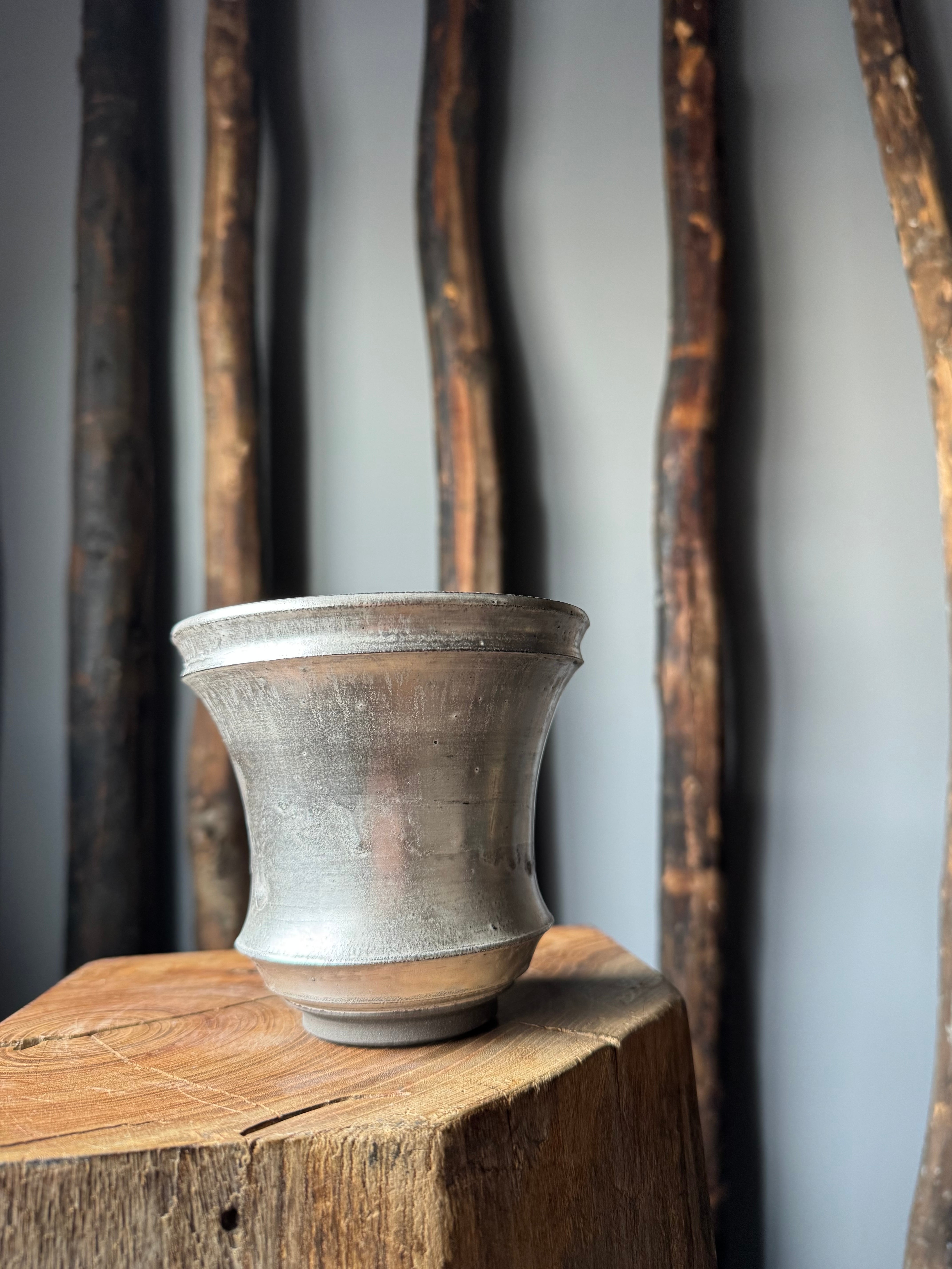 閑野淳氏は群馬県前橋市で作陶されており、釉薬の雰囲気が美しく植物を引き立ててくれます